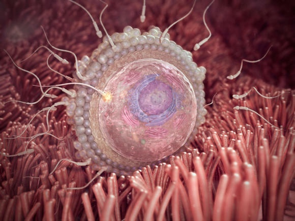 Počas prvého týždňa došlo k vysokému nárastu hormónov v tele (ide o estrogén a progesterón), ktoré pre telo znamenajú signál na vytvorenie novo prekrvenej vrstvy tkaniva v maternici, ide aj o podporu oplodneného vajíčka. Vajíčka dozrievajú vo vaječníkoch vo vačku, ktorý sa nazýva folikulov. Počas ovulácie, ktorá býva okolo 14. dňa bežného 28 dňového cyklu sa jedno z vajíčok oddelí z folikulu a putuje do vajcovodu. Počas ďalších 12 až 24 hodín dochádza k oplodneniu vajíčka jednou spermiou z množstva spermií, ktoré sa pohybuje približne okolo 250 miliónov. Toto je priemer spermií obsiahnutých v ejakuláte, ktorý prechádza vagínou, cez kŕčok maternice až do vaječníkov, vajcovodom k vajíčku. Len percento týchto spermií je schopné sa dostať do vajíčka. Cesta k vajíčku trvá niekoľko hodín a len jediná spermia je schopná úspešne prestúpiť vonkajšou membránou. V priebehu 24 hodín sa jadro spermie spojí s vajíčkom a vznikne kombinácia oboch rodičov. V tú chvíľu má oplodnené vajíčko buď chromozóm Y, vtedy sa narodí chlapček alebo chromozóm X a narodí sa dievčatko.