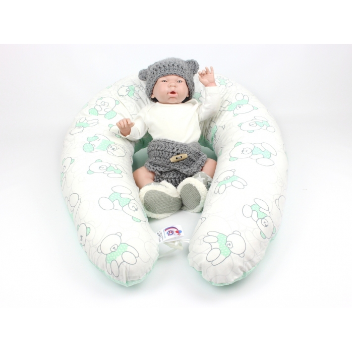 Dojčiaci vankúš MAXI 205 cm + snímateľný poťah, vzor MACKO ZELENÝ, 100% bavlna