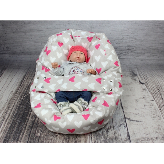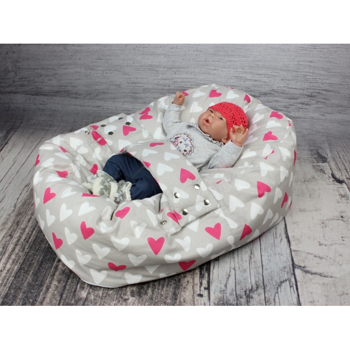 Relaxačný vak, hniezdočko pre bábätka, so snímateľným poťahom, 100% bavlna, SRDCE RŮŽOVÉ 100% bavlna