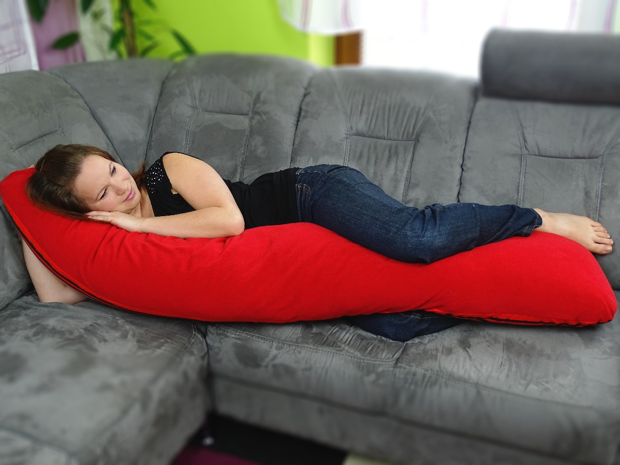 Prítulný vankúš je unikátny svojou dĺžkou 180 cm a šírkou 40 cm.