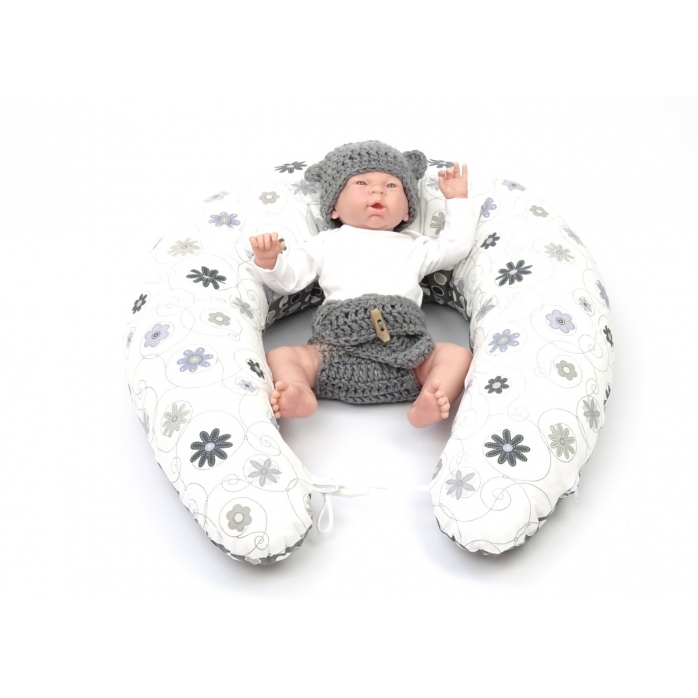 Dojčiace vankúš MAXI 205 cm + snímateľný poťah, vzor LÚKA ČIERNOBIELA 100% bavlna