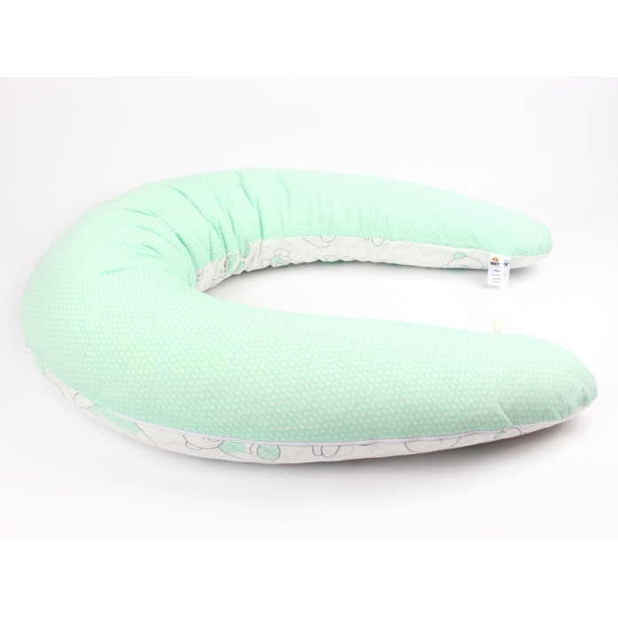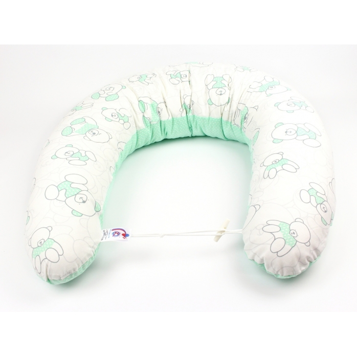 Dojčiaci vankúš MAXI 205 cm + snímateľný poťah, vzor MACKO ZELENÝ, 100% bavlna