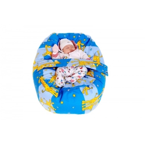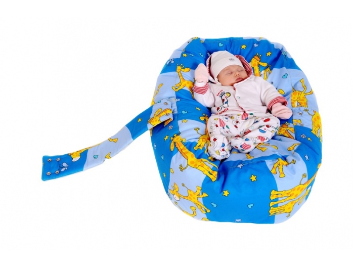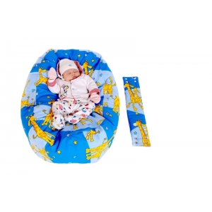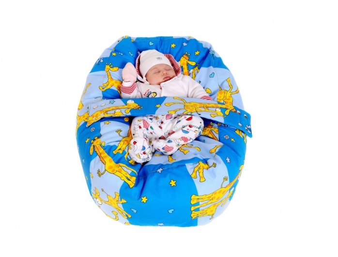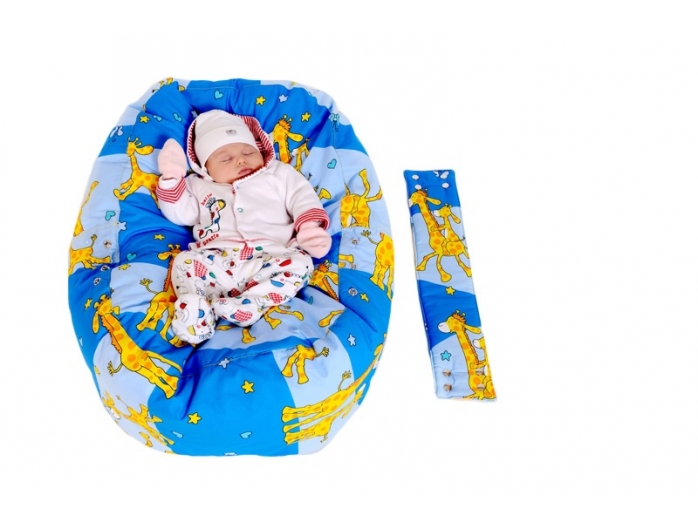Relaxačný vak, hniezdočko pre bábätka, so snímateľným poťahom, 100% bavlna, ŽIRAFA MNODRÁ